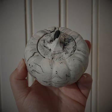 Découvrez les citrouilles en jesmonite, vrai objet de décoration, petite boite à bijoux ou bougeoir, vous lui trouverez sa place dans votre cocoon !